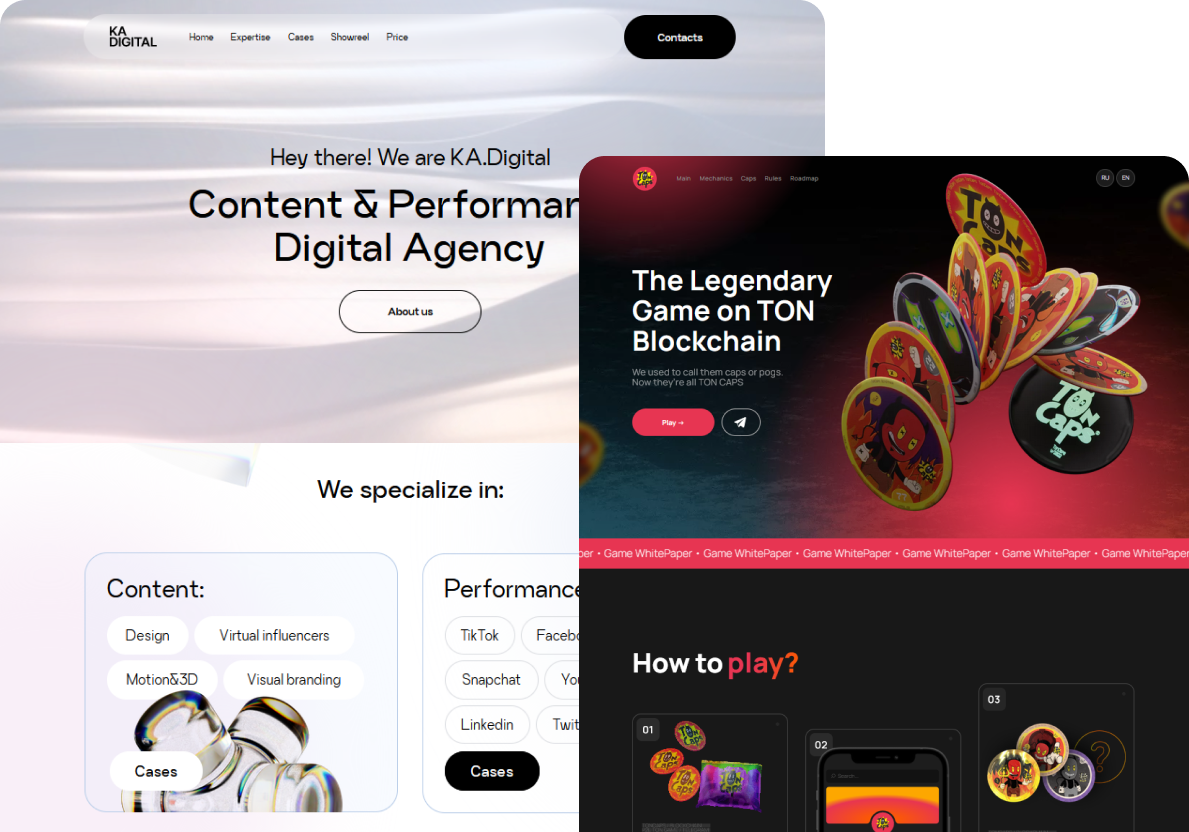 Website is an absolute base for any business. So if you need an awesome CGI combined with a creative approach to UX/UI-design and a seamless user experience — we’ve found each other